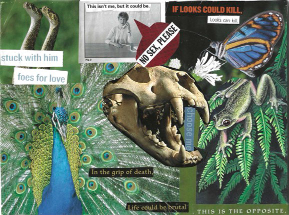 paper collages made of cutouts from Birdy and National Geographic magazines and vintage advertisements